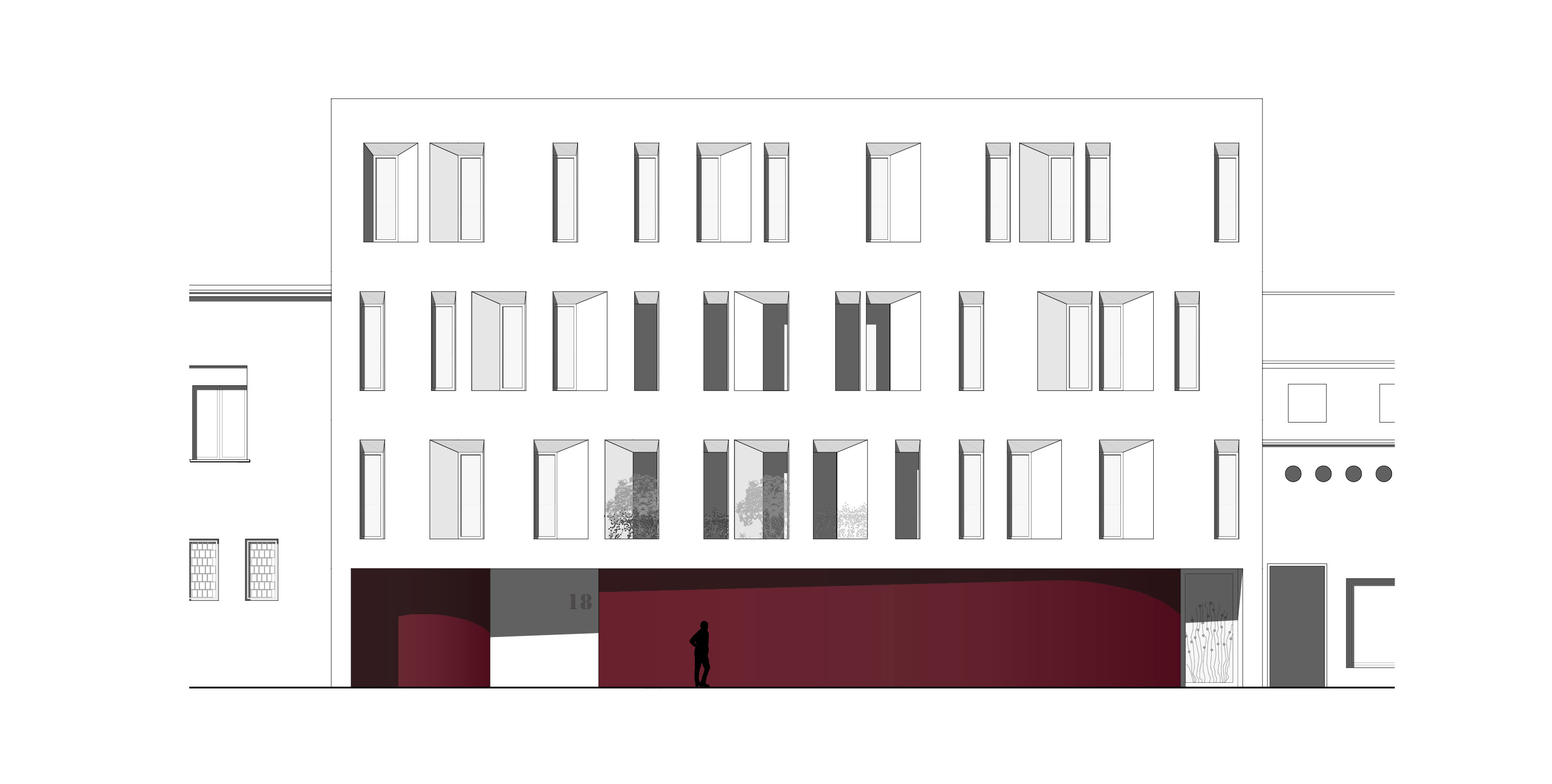 Su richiesta del committente, il progetto prevede la demolizione di un edificio del XX secolo e la costruzione di un nuovo blocco residenziale, aumentando sia il numero sia la qualità architettonica delle unità abitative.