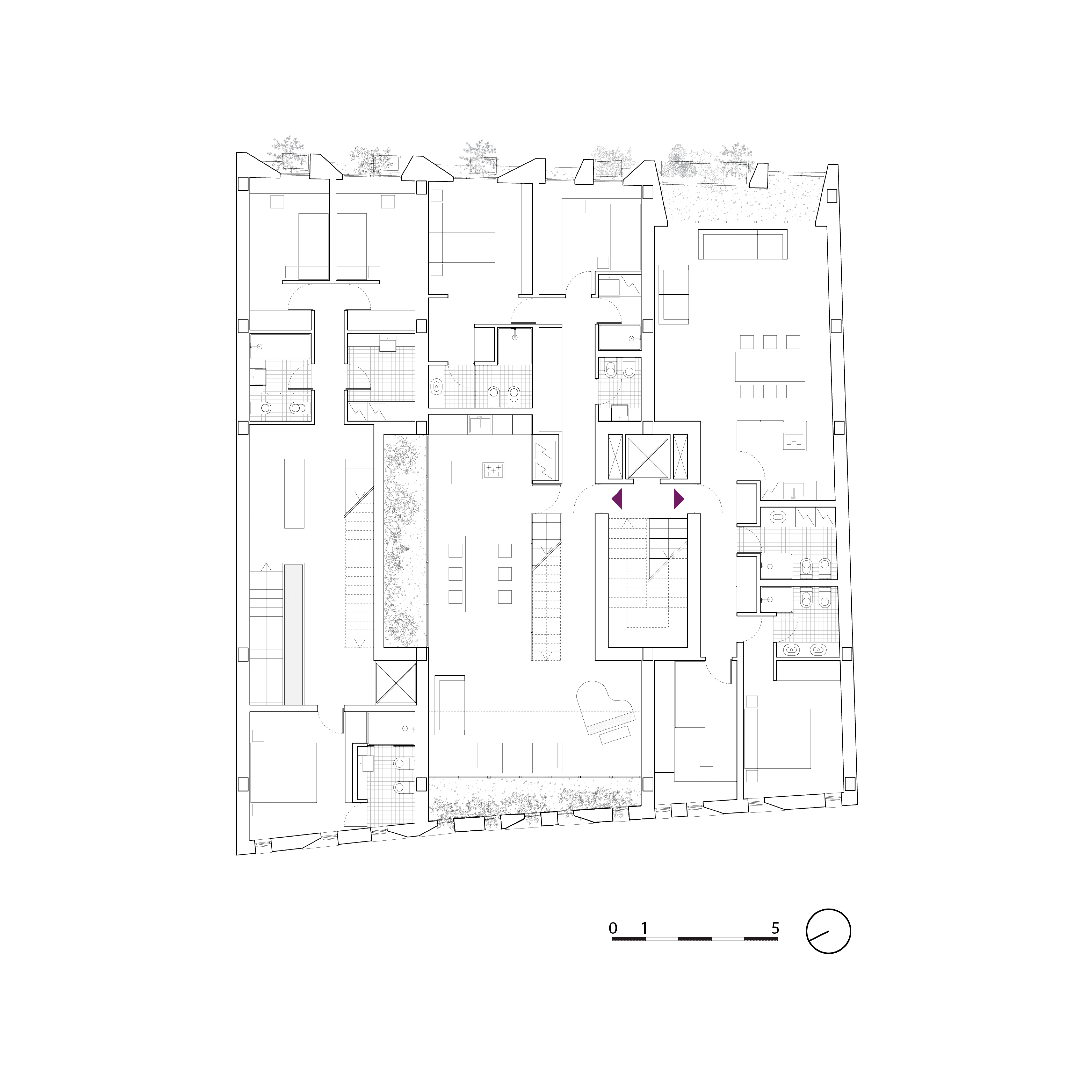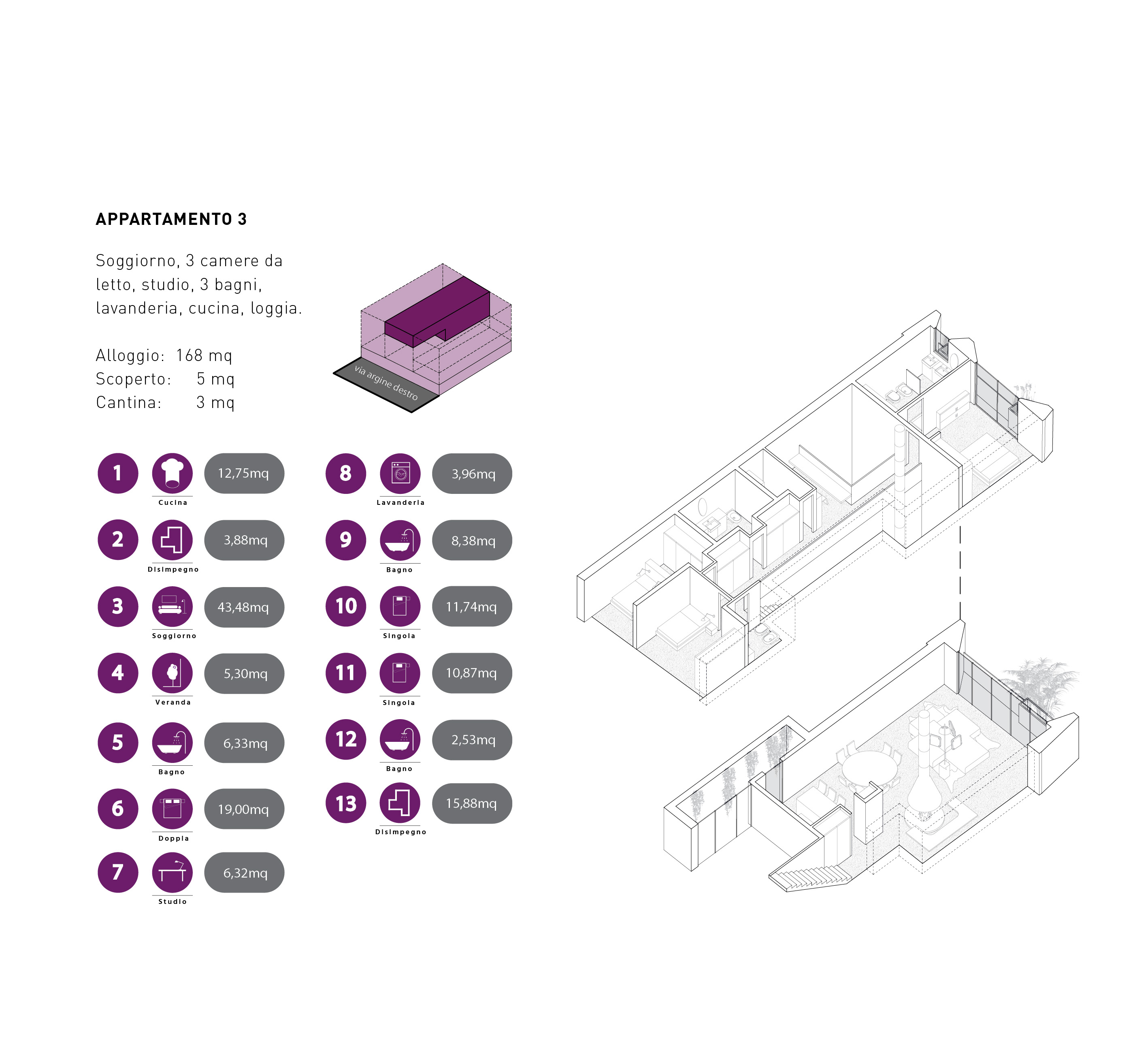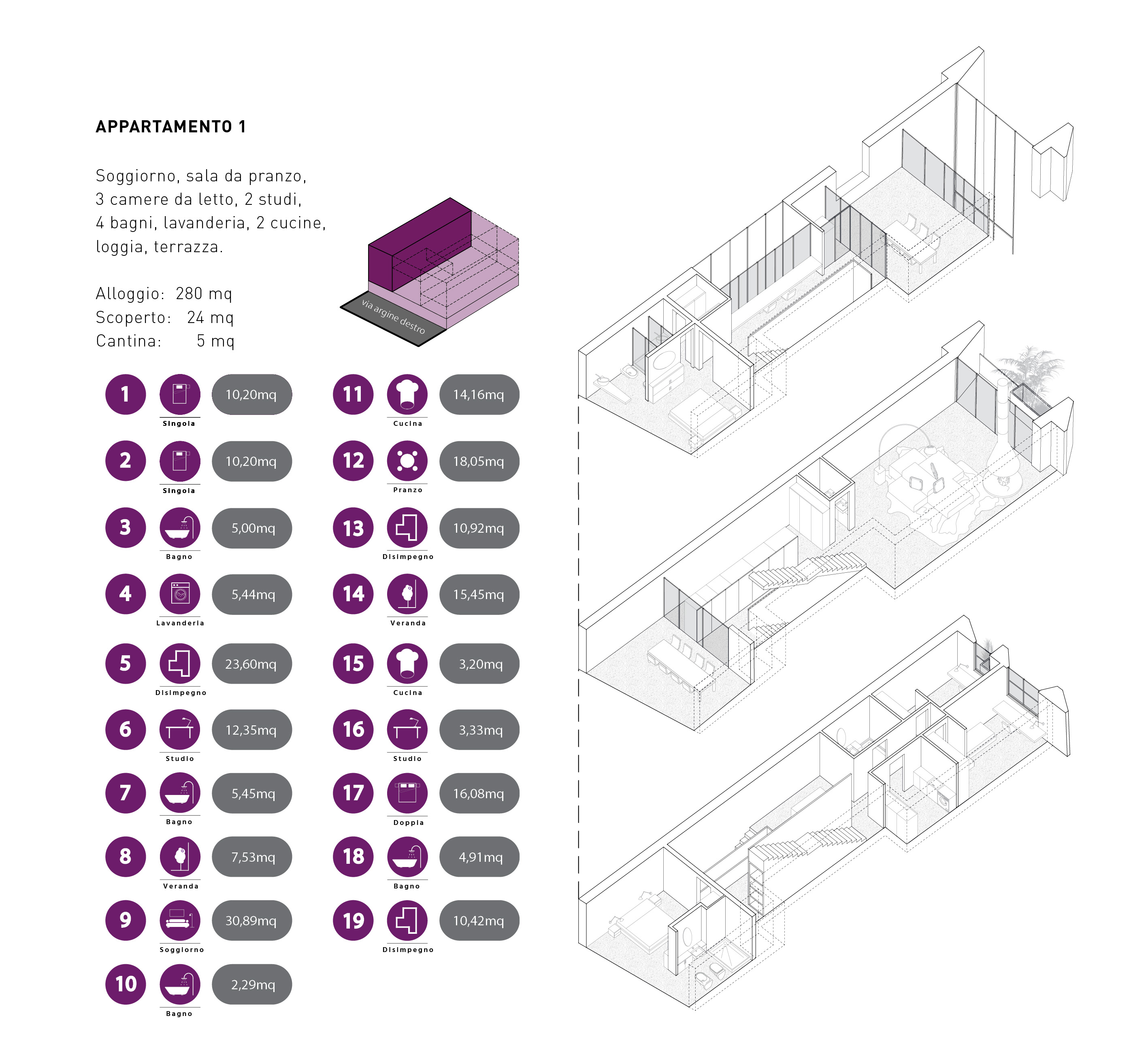 • un triplex che occupa un’intera fascia verticale con accesso indipendente.