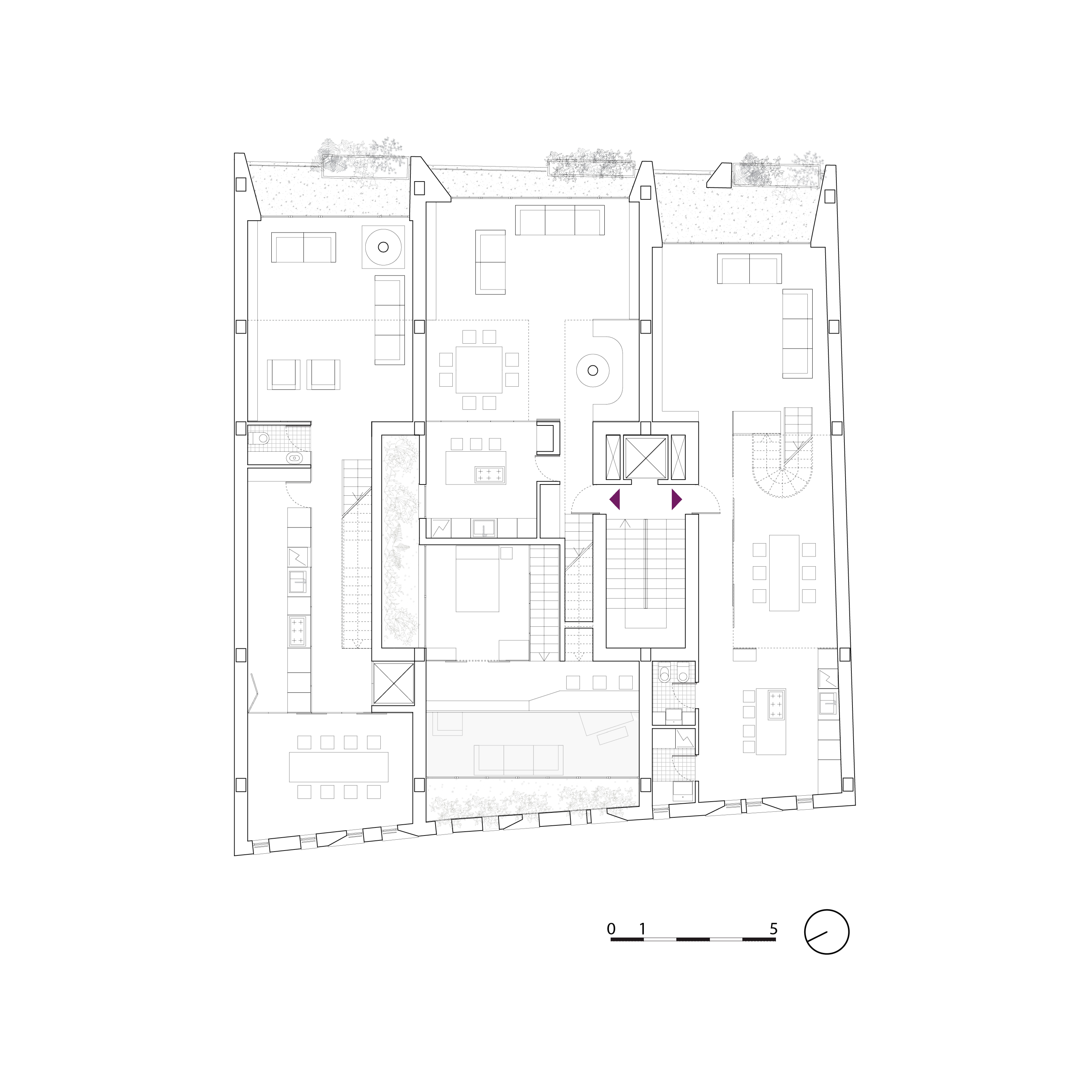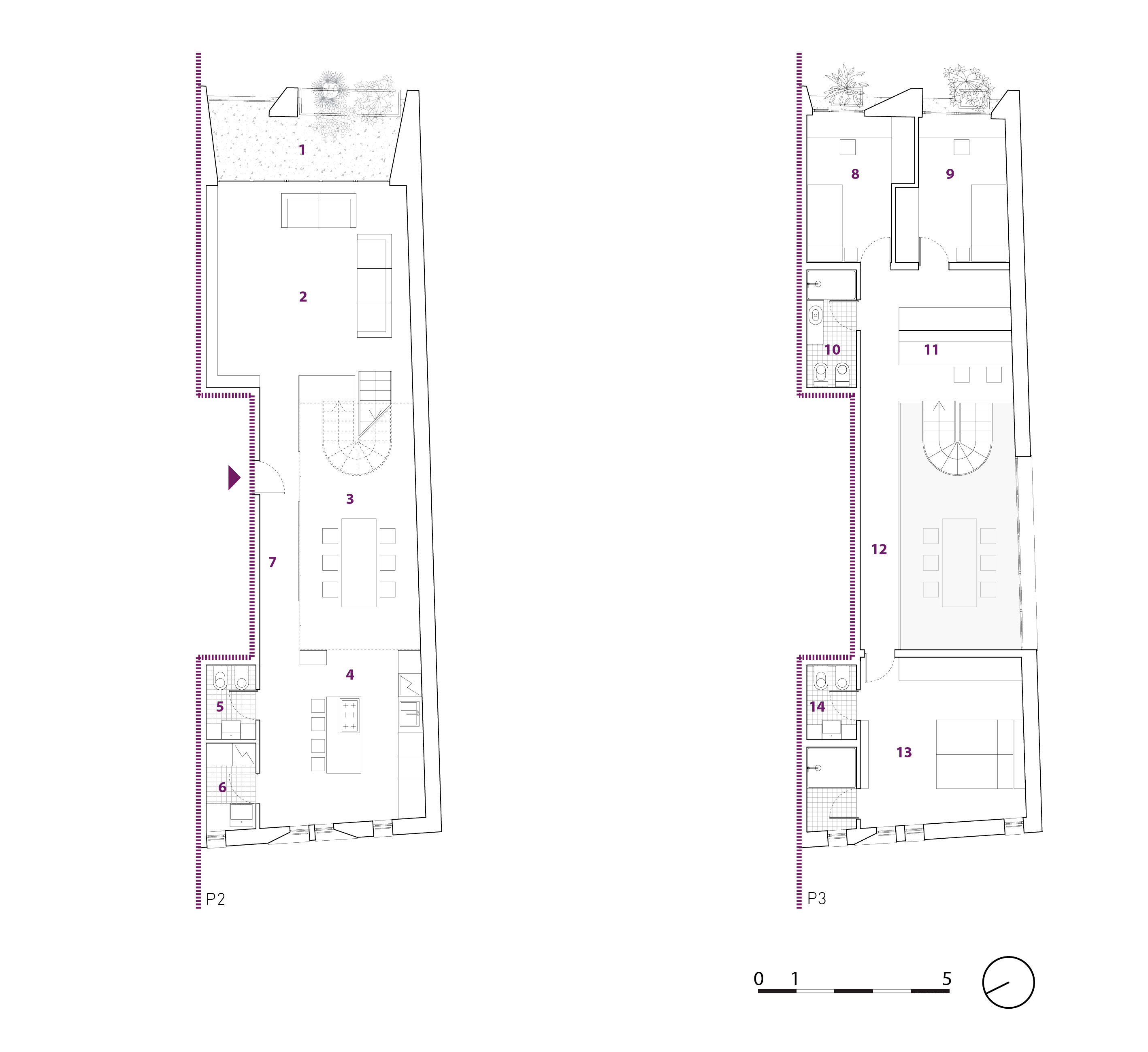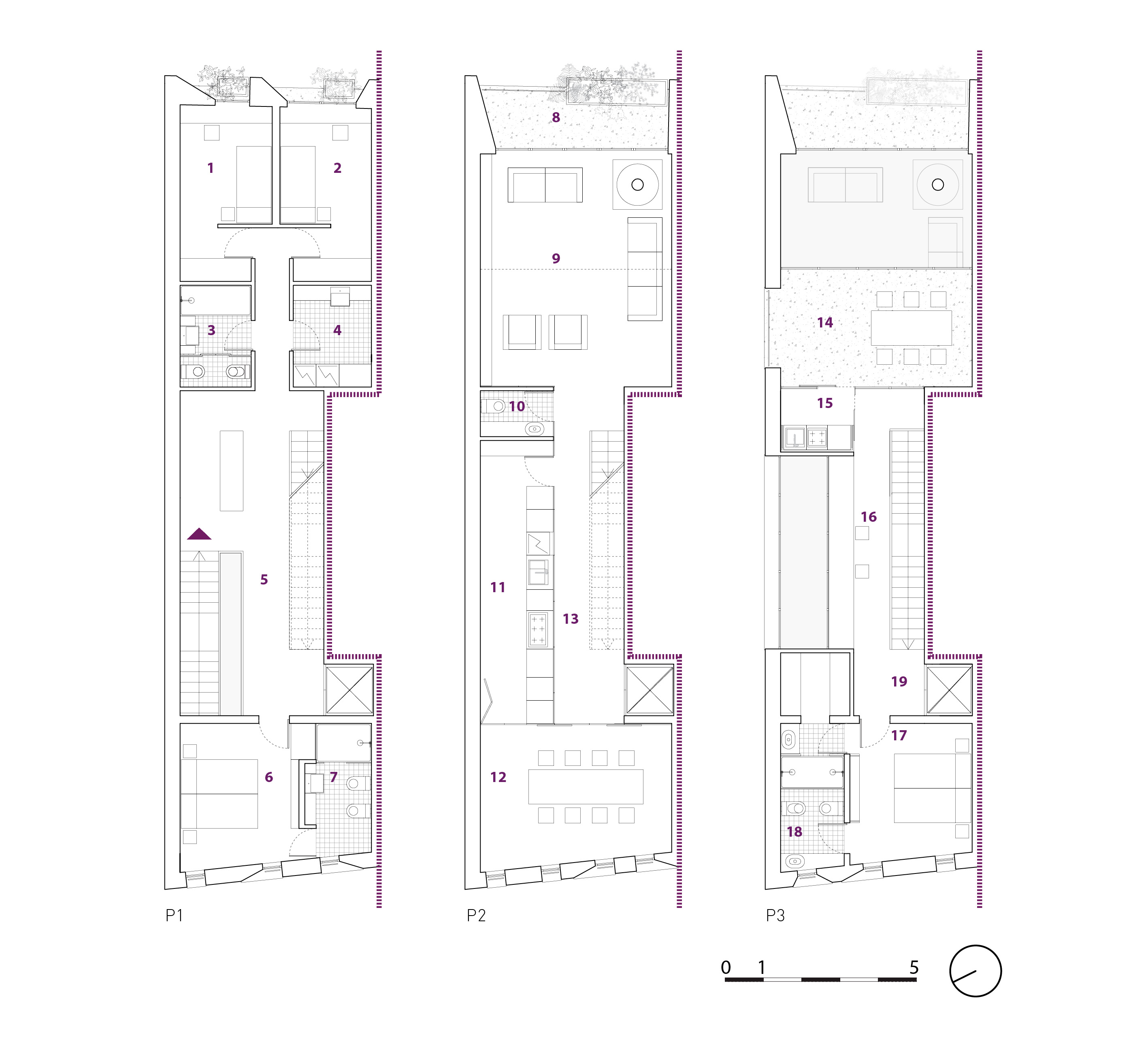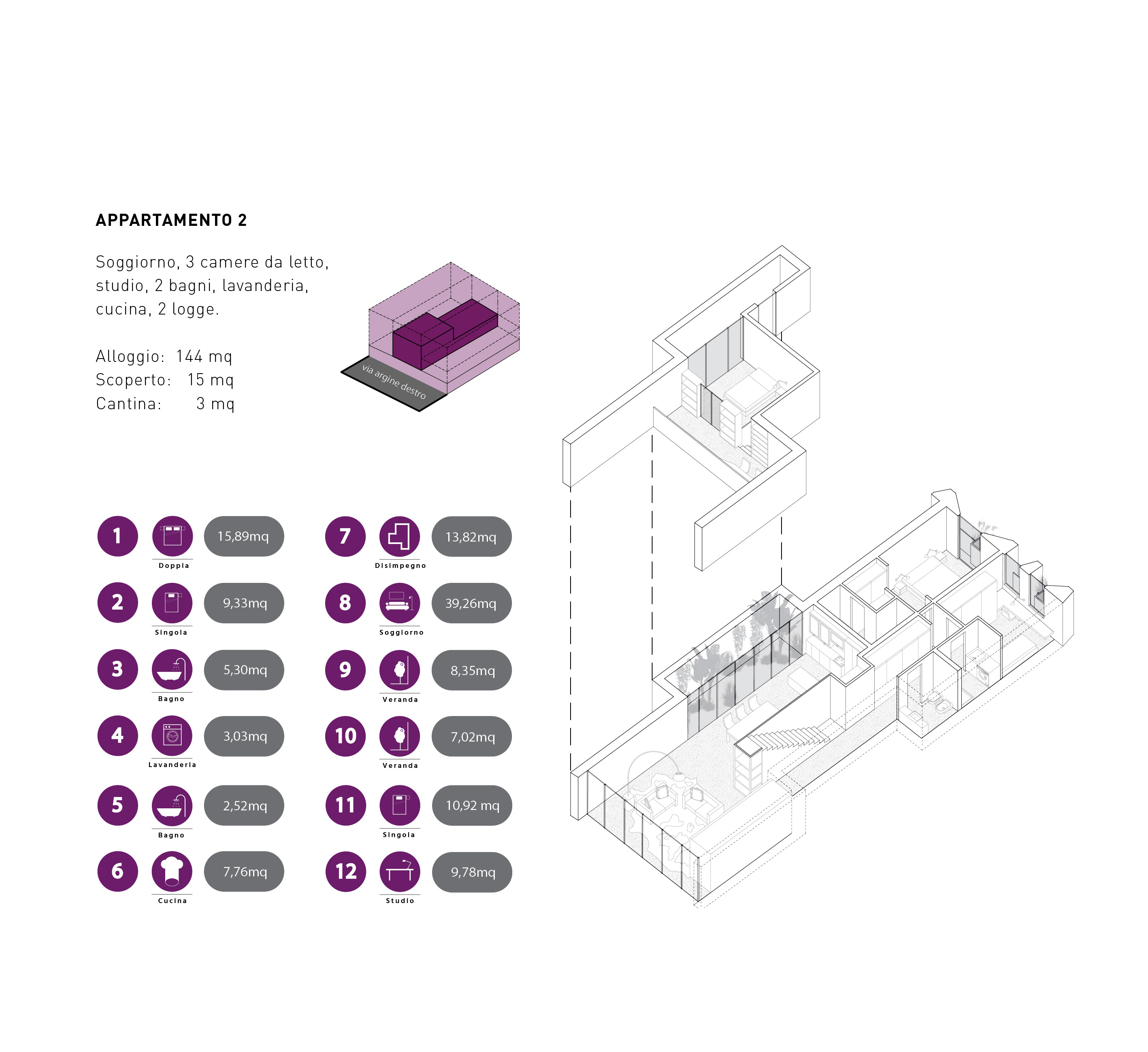• un triplex che occupa un’intera fascia verticale con accesso indipendente.