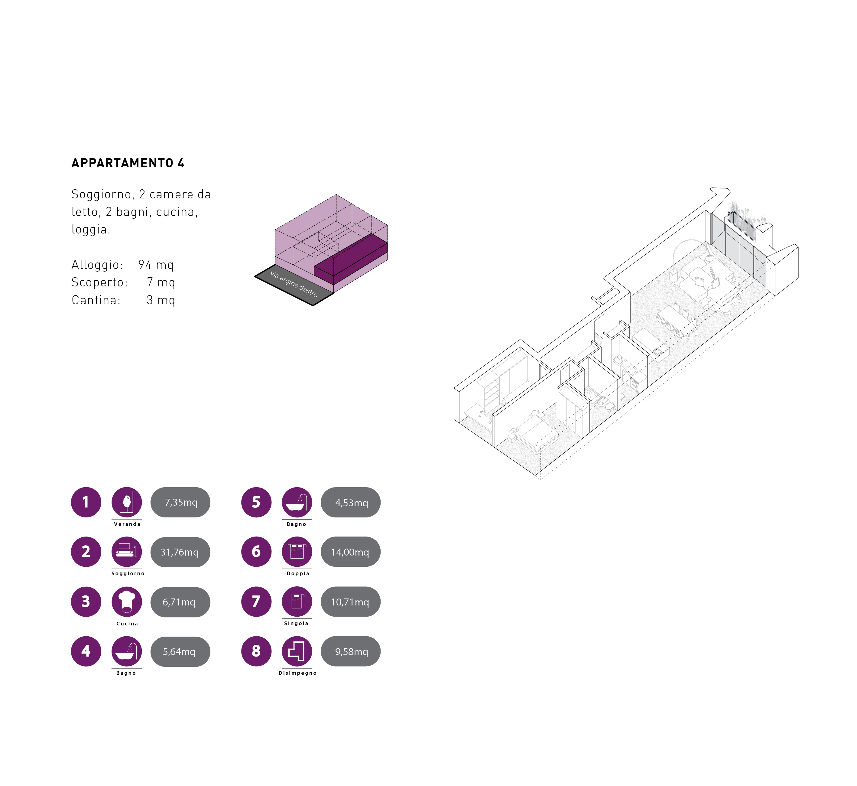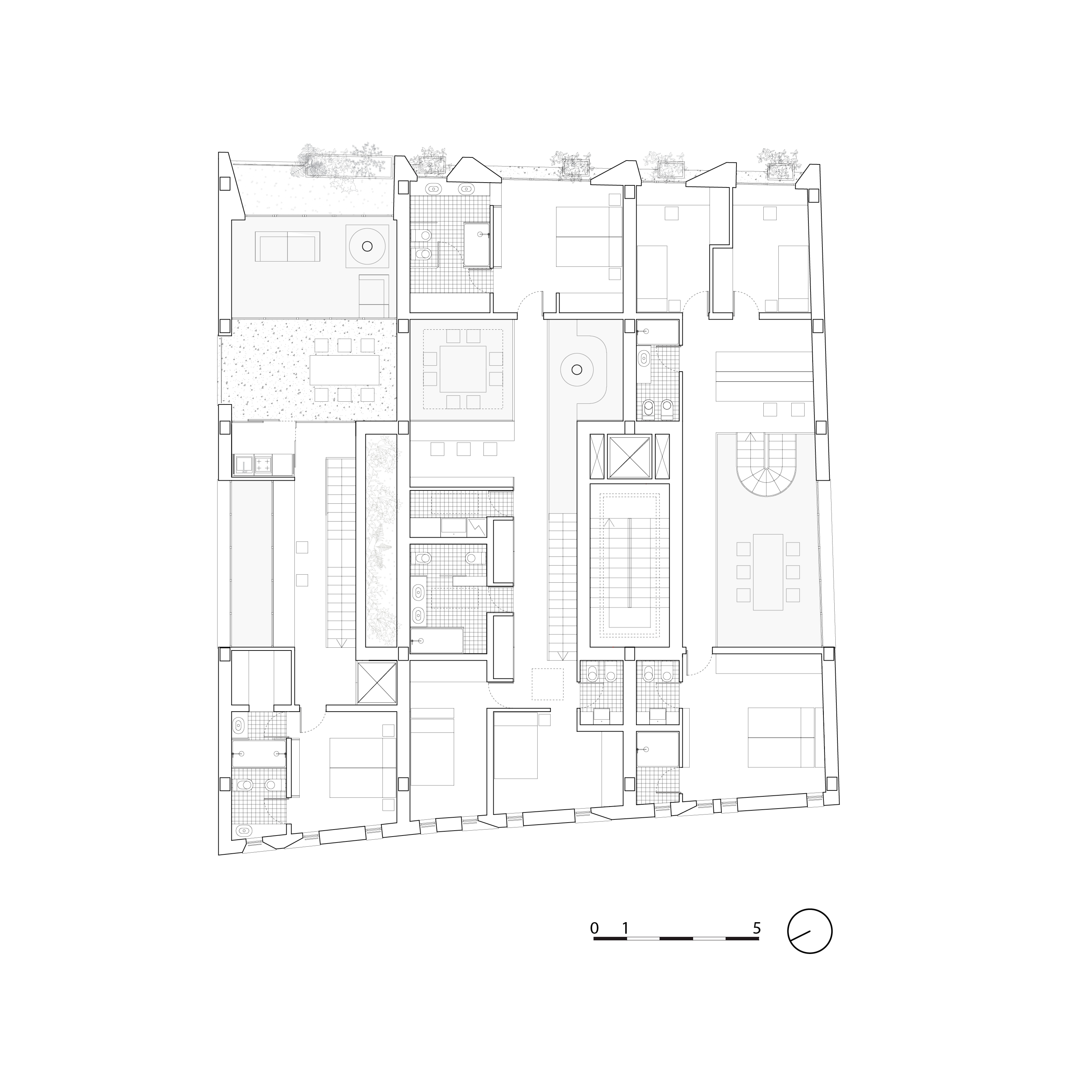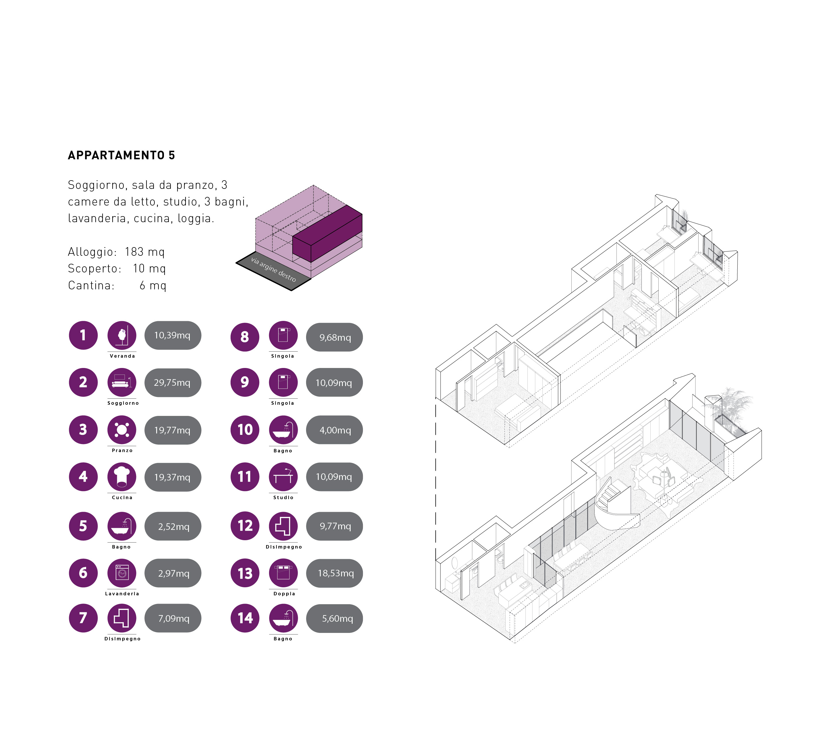 Questo vincolo diventa opportunità per sperimentare tipologie di alloggi diversificate, con spazi articolati e dimensioni adatte a differenti acquirenti all’interno dello stesso fabbricato.